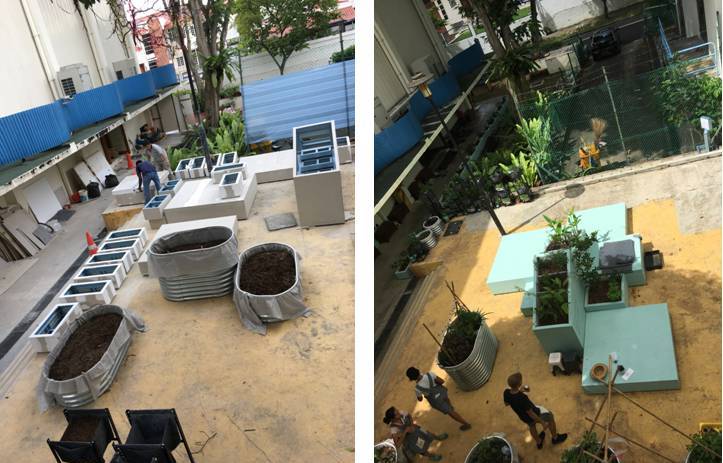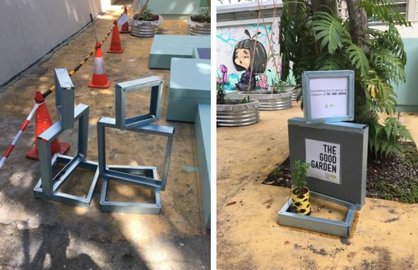 In this garden, small frames are used to form the various planter boxes. This project is located in a public space. To visit, click here for details